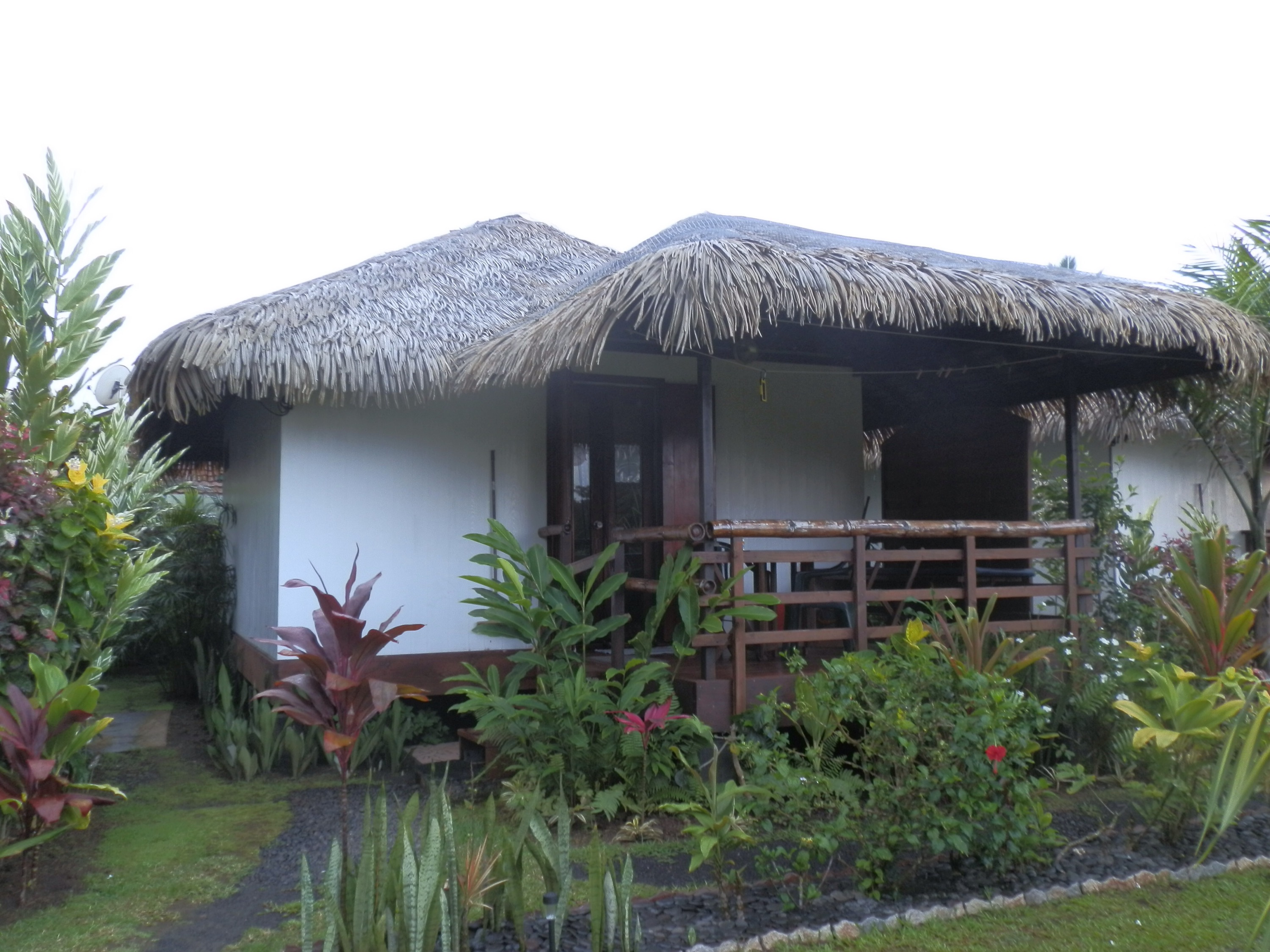 At last we arrive at the edge of the 1.5km wide isthmus that joins the big island of Tahiti to the smaller island of Tahiti iti – as far as we can get from Papeete and its population of 17,000. So happy to be in a sweet little palm-thatched hut on a black-sand beach with enough supplies to last us a week. Ah peace!