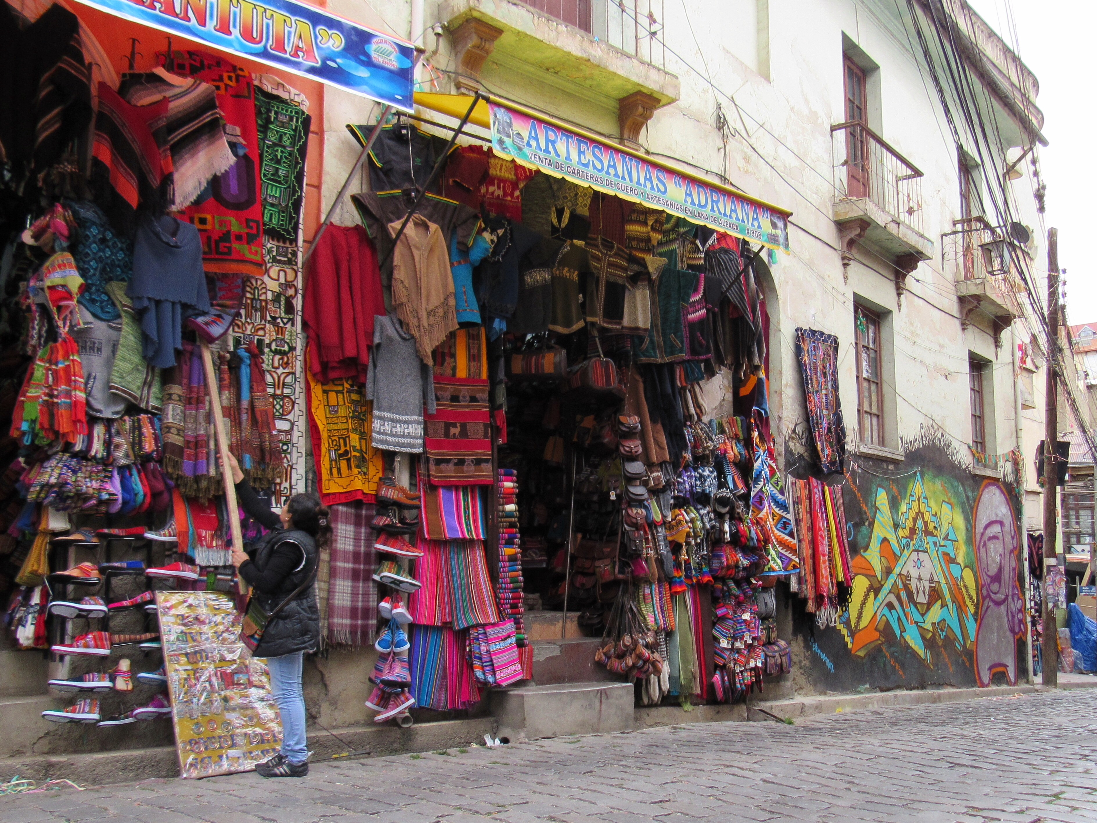There are a lot of tourists in La Paz. It’s a bit of a shock because we haven’t really seen any others in Paraguay or in Bolivia up until now. There’s a whole area around the market street of Sagarnaga that’s known affectionately (or otherwise) as ‘Gringolandia’. This is the place to go for souvenir shopping – small shops and market stalls line the streets selling every type of Bolivian craft and souvenir that you might want to take home. There are some beautiful textiles, wooden items and silver work but after the first few shops it’s the same thing over and over again. We didn’t really buy anything. A wall hanging might have been nice but we can’t carry it and we didn’t fall in love with anything enough to make us search out a post office and spend a day dealing with that kind of drama.