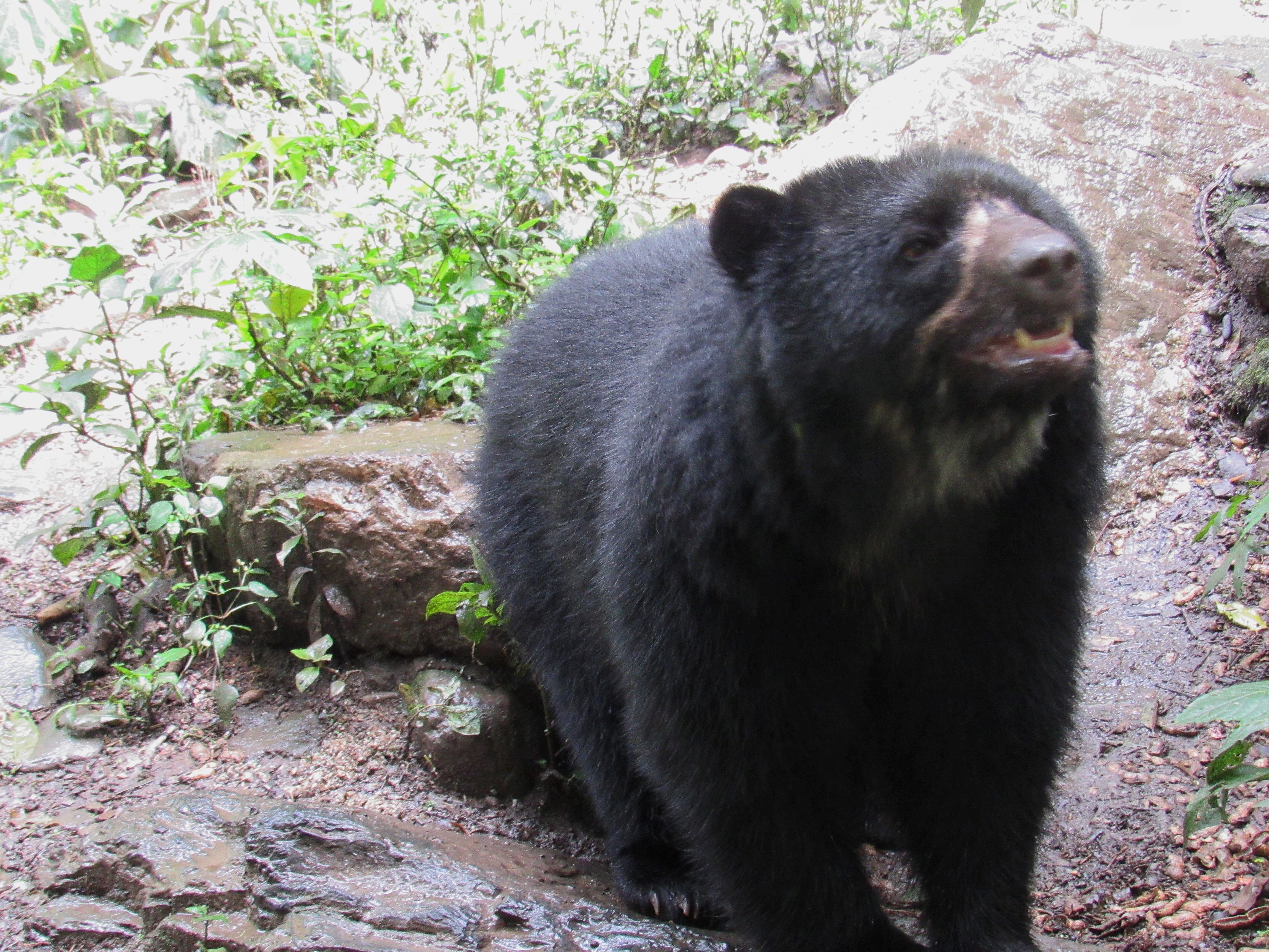 One of the most exciting things we saw there were spectacled bears. The photo is a bit blurry which might be because I was shaking. That bear was pretty damned close with only a thin electric fence between us. The bears are almost blind with a strong sense of smell. They put their noses up in the air and sniff. They look adorable but I think they’re smelling a potential dinner.