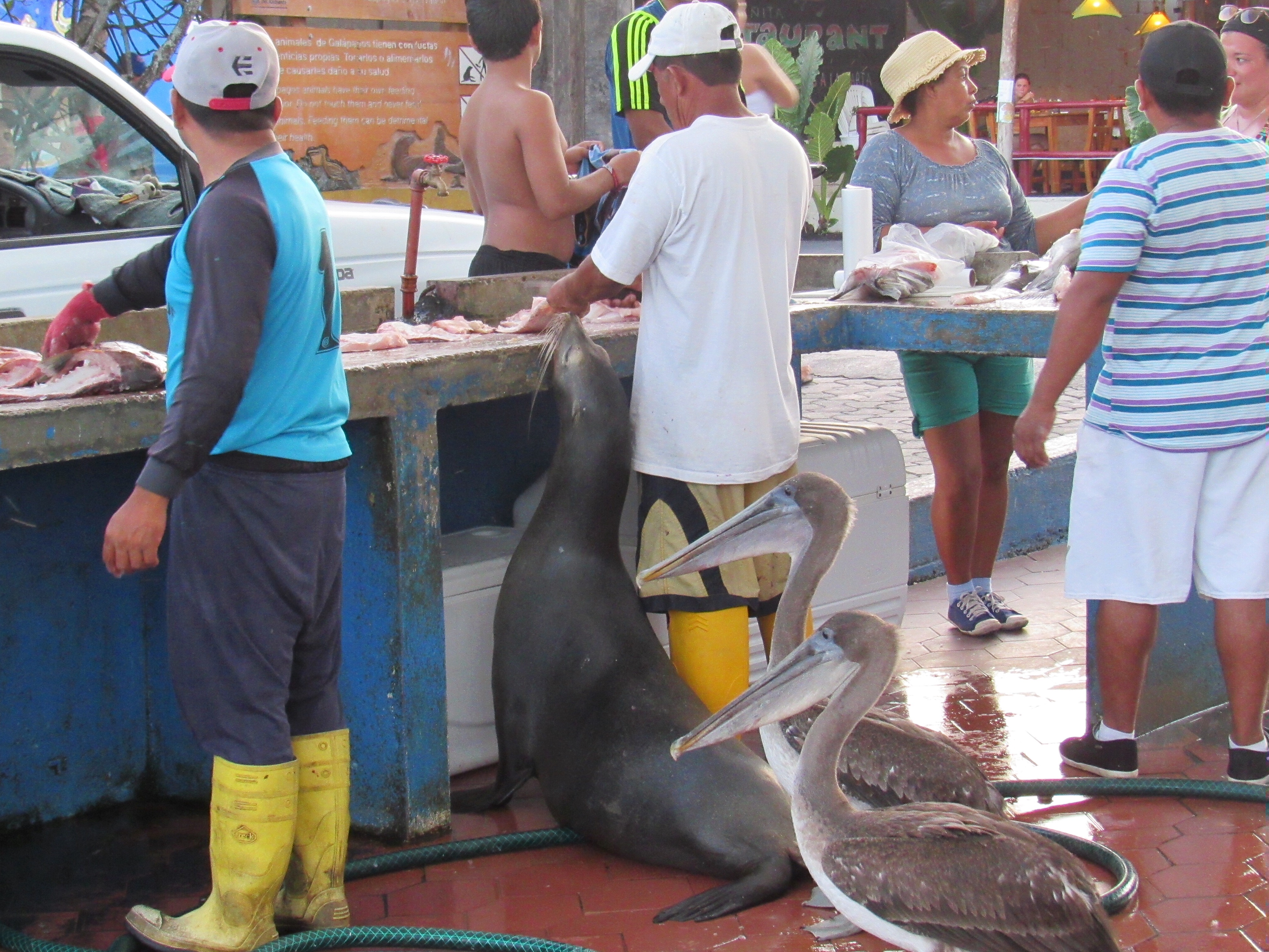 Wildlife is everywhere in the Galapagos and so many of the quirky creatures seem unfazed by humans and mingle in the funniest ways. Penguins and dolphins frolic in the bays and pelicans and sea lions shop at the fish market.