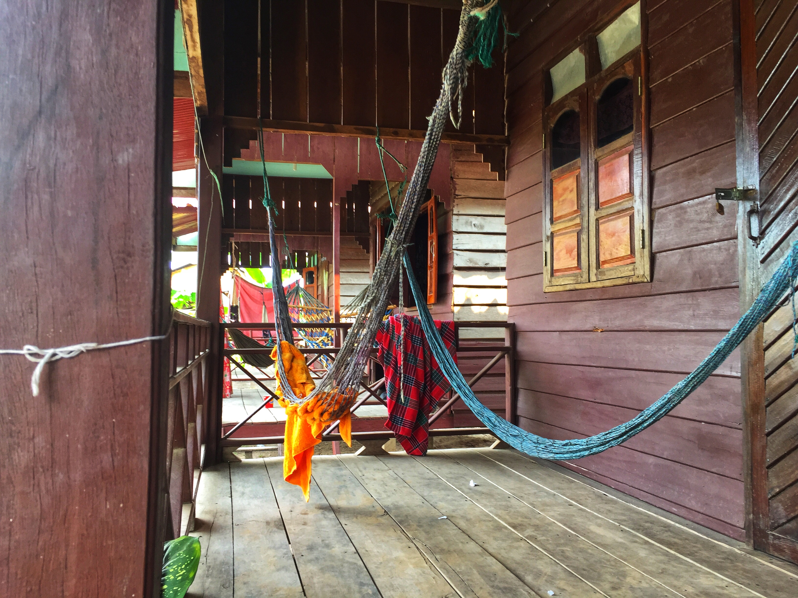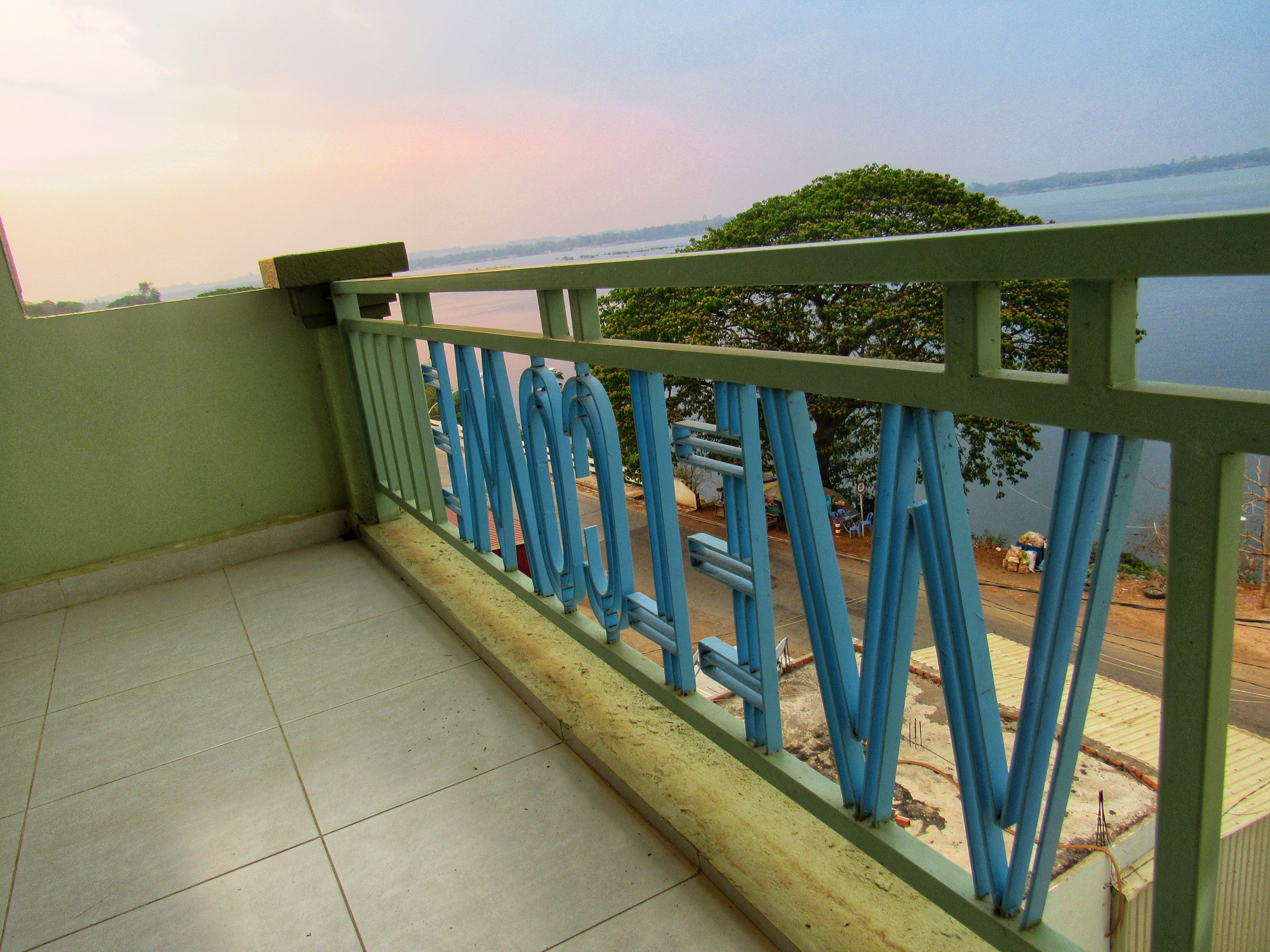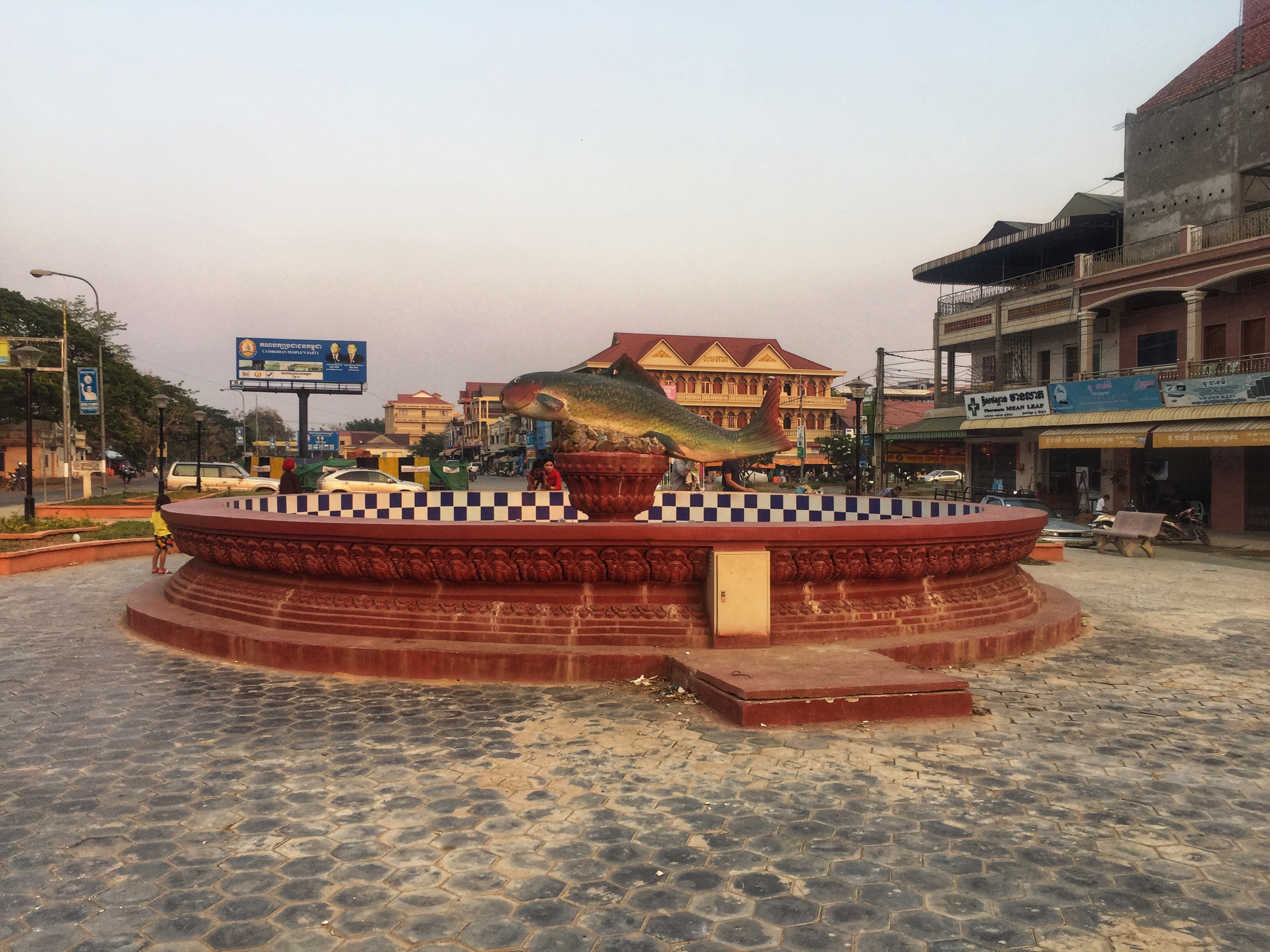 The big fish fountain, Stung TrengIt’s great to get away from the tourist hotspots. The food’s always shit though, especially if you’re vegetarian. No exception here but our hotel room is pretty cool. A corner room with a balcony, overlooking the junction of the beautiful rivers. It feels like we’re staying inside the Asian version of a 1950s seaside holiday postcard.