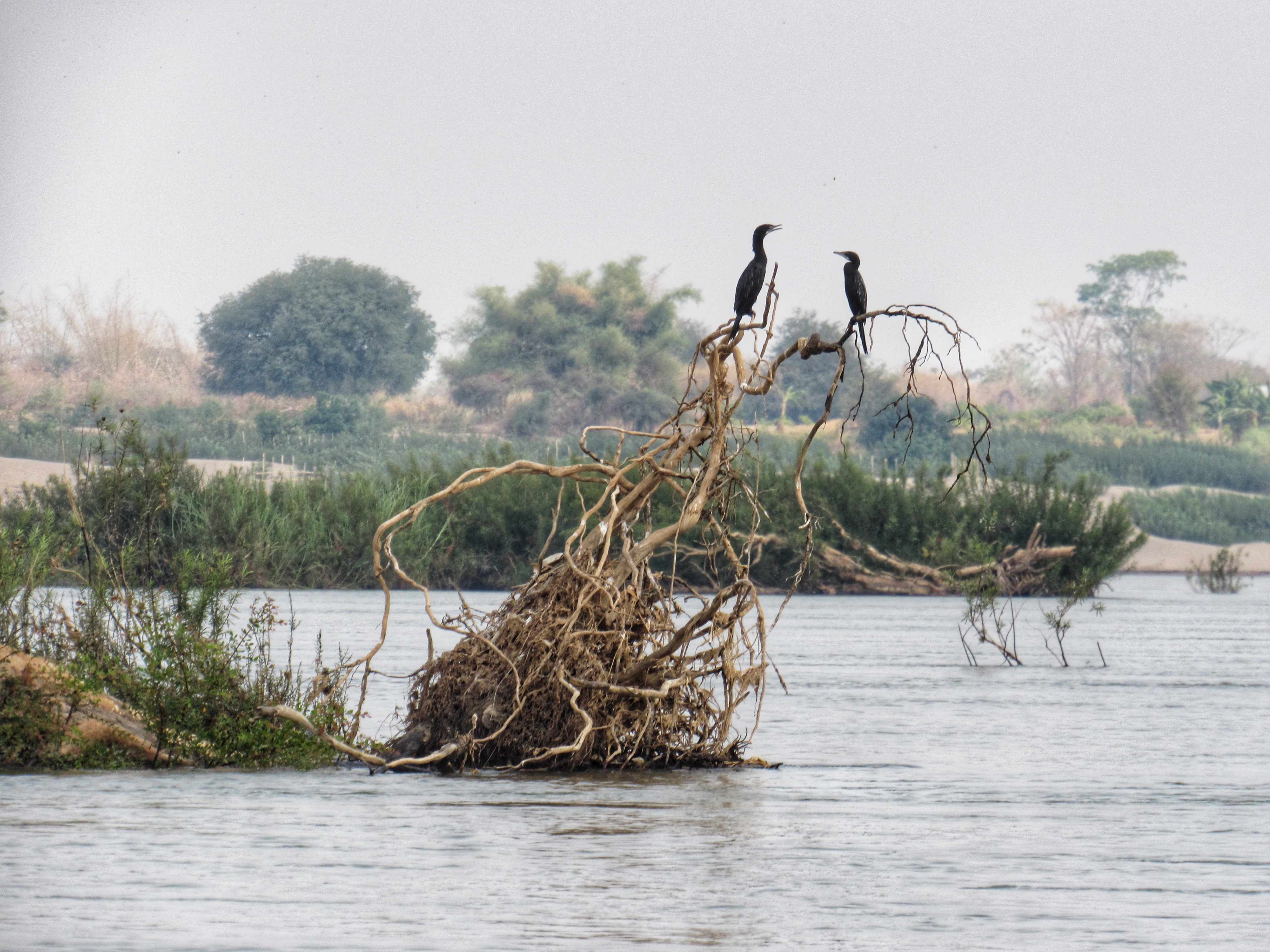 Two trees hugging in the flooded forestAfter our little holiday in the country we were ready to head up into Laos. I wasn’t impressed when our minivan was two hours late and full of mangoes – right up to the ceiling! After squeezing us in with a shoehorn, I was even less impressed when we stopped just down the road to pick up three European backpackers and their luggage. I did some rhetorical shouting but by the time everyone was squashed in, and then the door fell off, the journey had descended into pure comedy.
