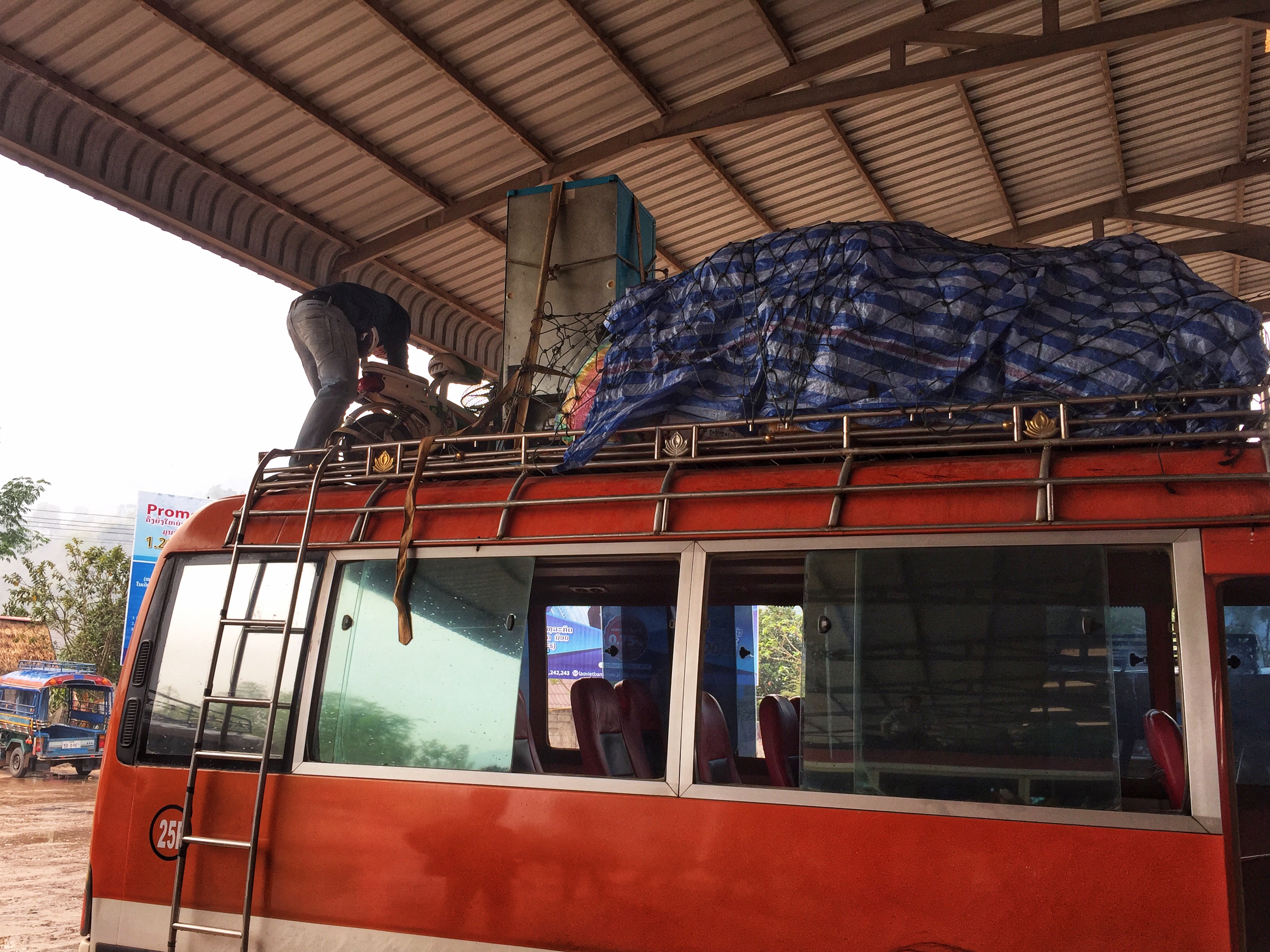 Even though we paid more than double the going price for tickets on the one-whole-seat-per-person fancy van, somehow we still ended up sitting in the aisle on the public bus to Oudomxay in northern Laos.