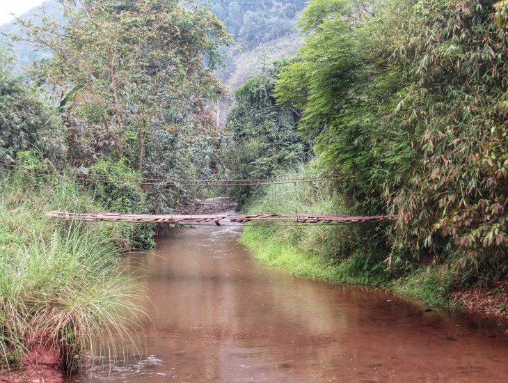 After an overnight stop in Oudomxay, we set off further north. It started out well but as we headed down from the mountains, things became not beautiful at all. We travelled for hours through clouds of unbelievably thick dust from a massive road/rail/building construction site almost all the way to Nuang Lamtha. Added to this is thick smoke from the ‘South East Asian haze’ – air pollution caused by multiple fires across the whole region. Apparently this happens every year in the dry season but seems to be getting worse each year. It’s a combination of native forests being burnt for plantations (rubber, teak, palm oil etc.), everywhere but especially in Indonesia, and ‘slash and burn’ agricultural practices by subsistence farmers in Thailand and elsewhere. It has to be seen to be believed. It’s been bad all through Cambodia and worse in Laos as we’ve been heading north. I imagine it’s otherwise quite beautiful along this road with lots of ethnic villages. However, everyone on the bus throws their rubbish out the window and all along the sides of the road are piles of plastic. I caught glimpses of people with unidentified wild animals tied up with ropes and monkeys in small cages. I know this is no different to the way chickens and pigs are treated in factory farms in Australia but both situations give me nightmares. We arrived in Luang Namtha grimy, disheartened and shaken.